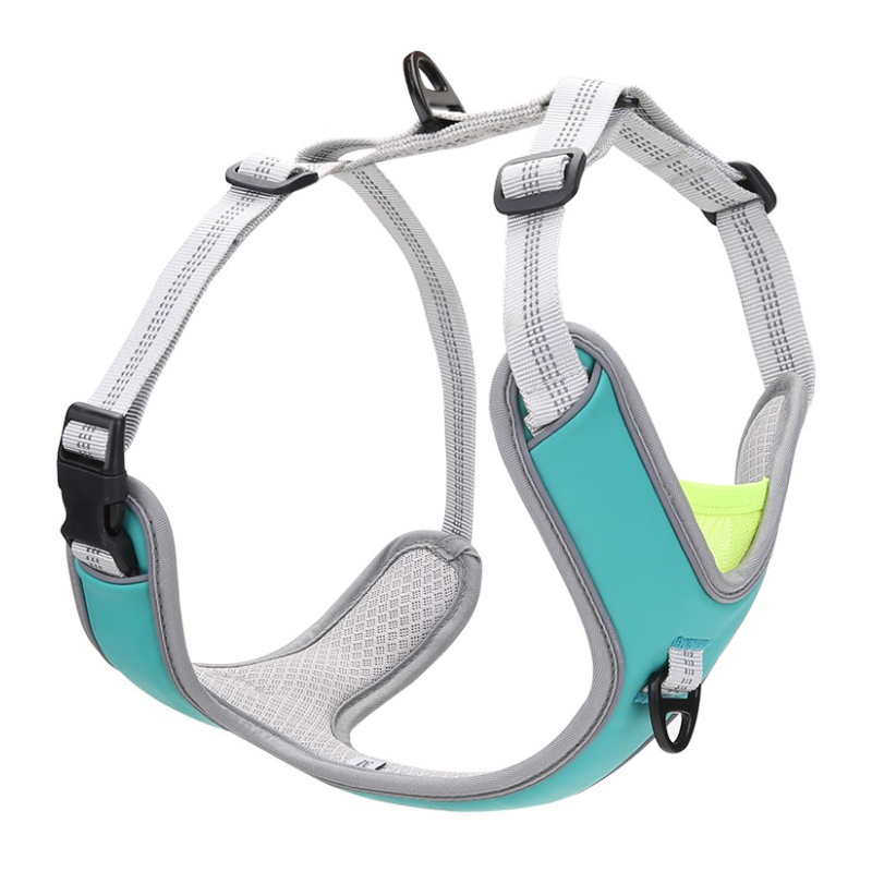 Adjustable soft v chest harness with reflective stripes & 2 D-rings. Size: M, Color: Light BlueDimensions: 48-65cm